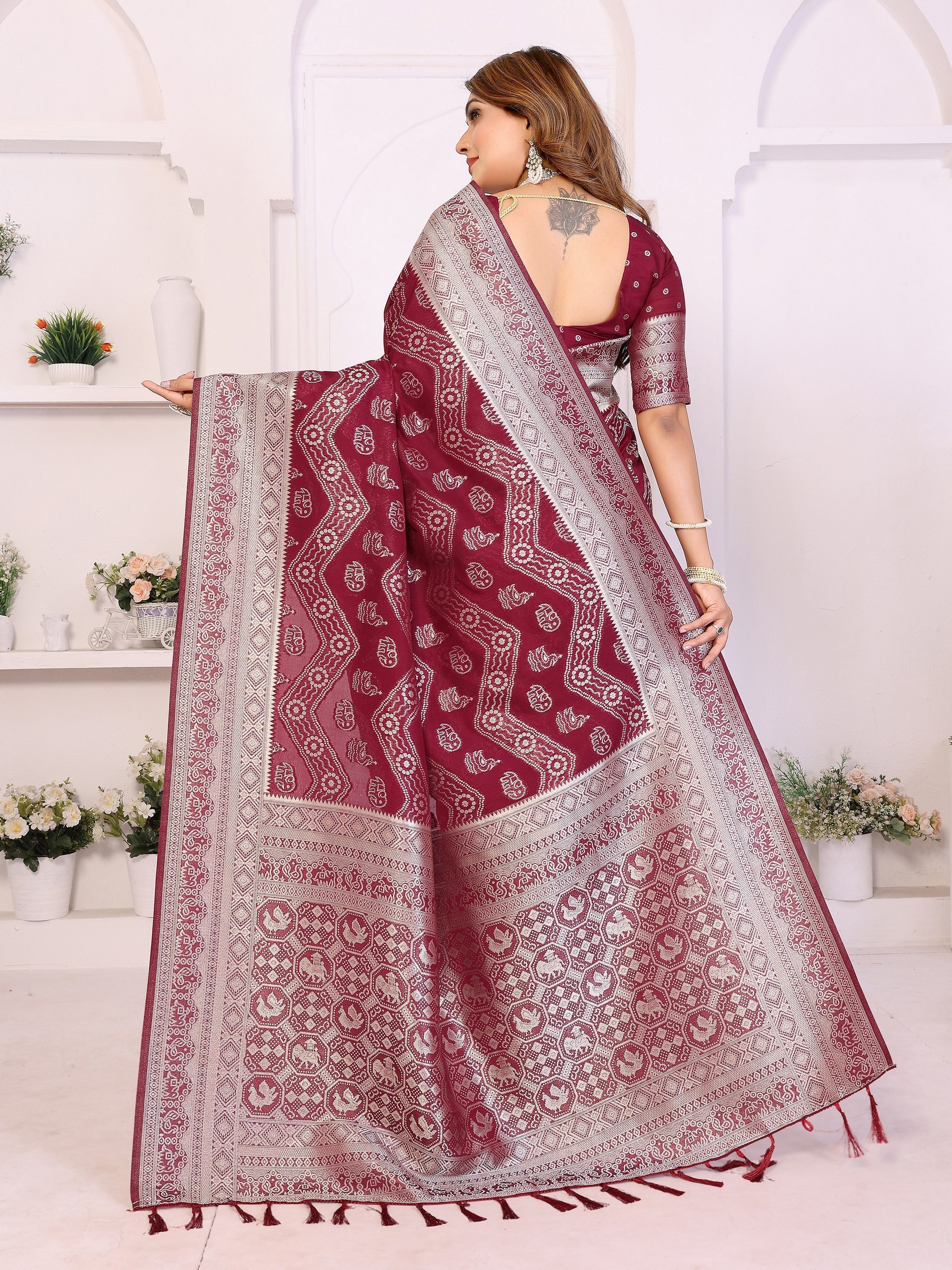 Maroon Color Georgette Silk Fabric Woven Laheriya Jari Designer Saree