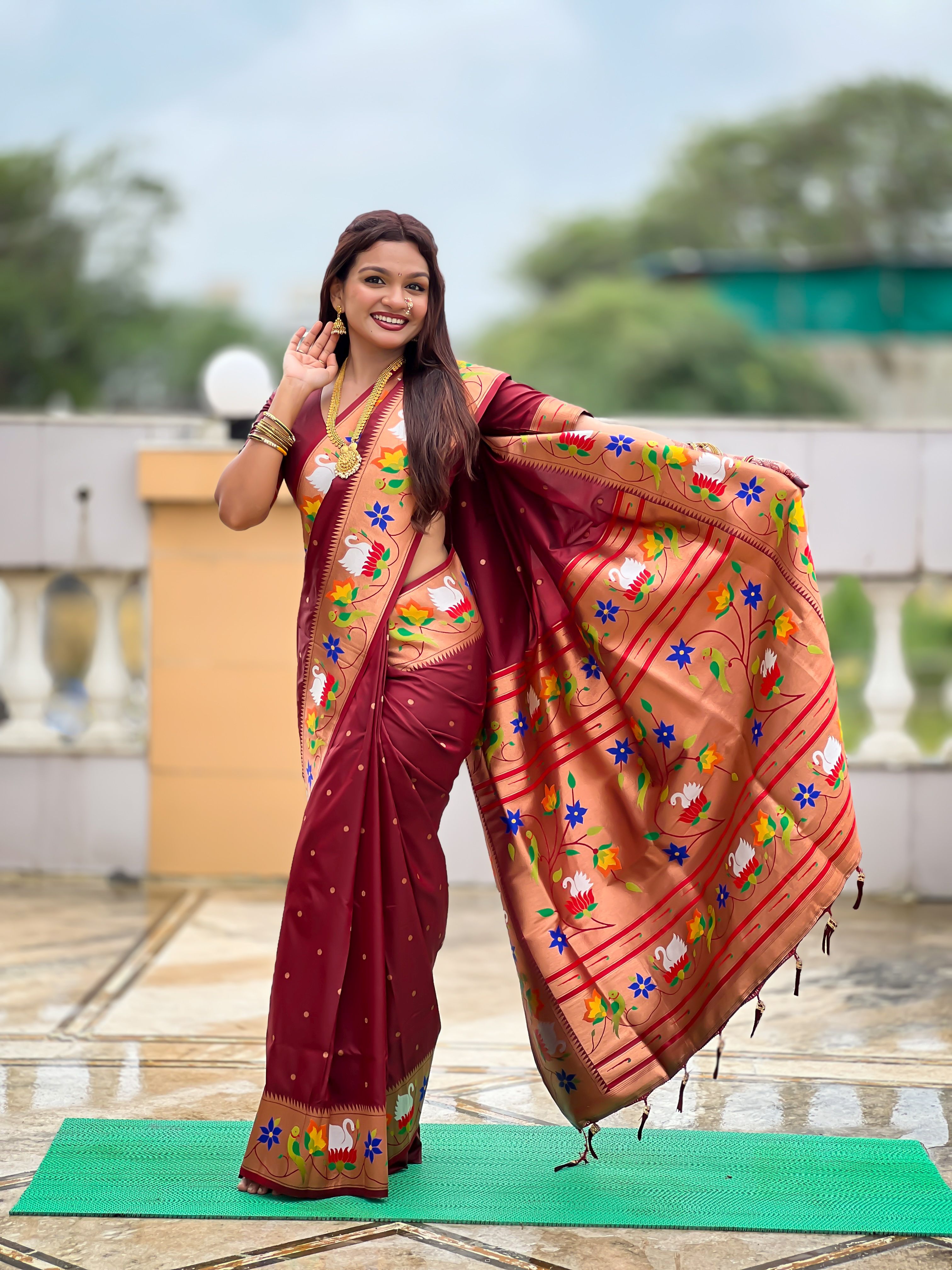 Maroon Color Paithani Silk Woven Meenakari Jacquard Designer Heavy Wedding Special Saree