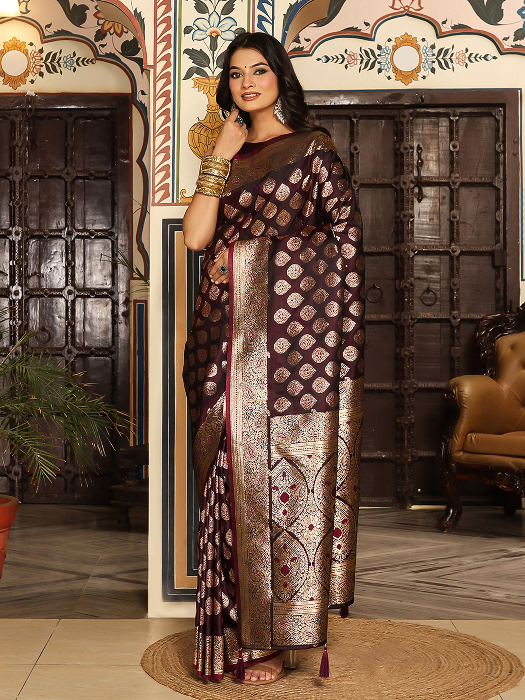 Maroon Color Silk Blend Woven Designer Ethnic Partywear Saree