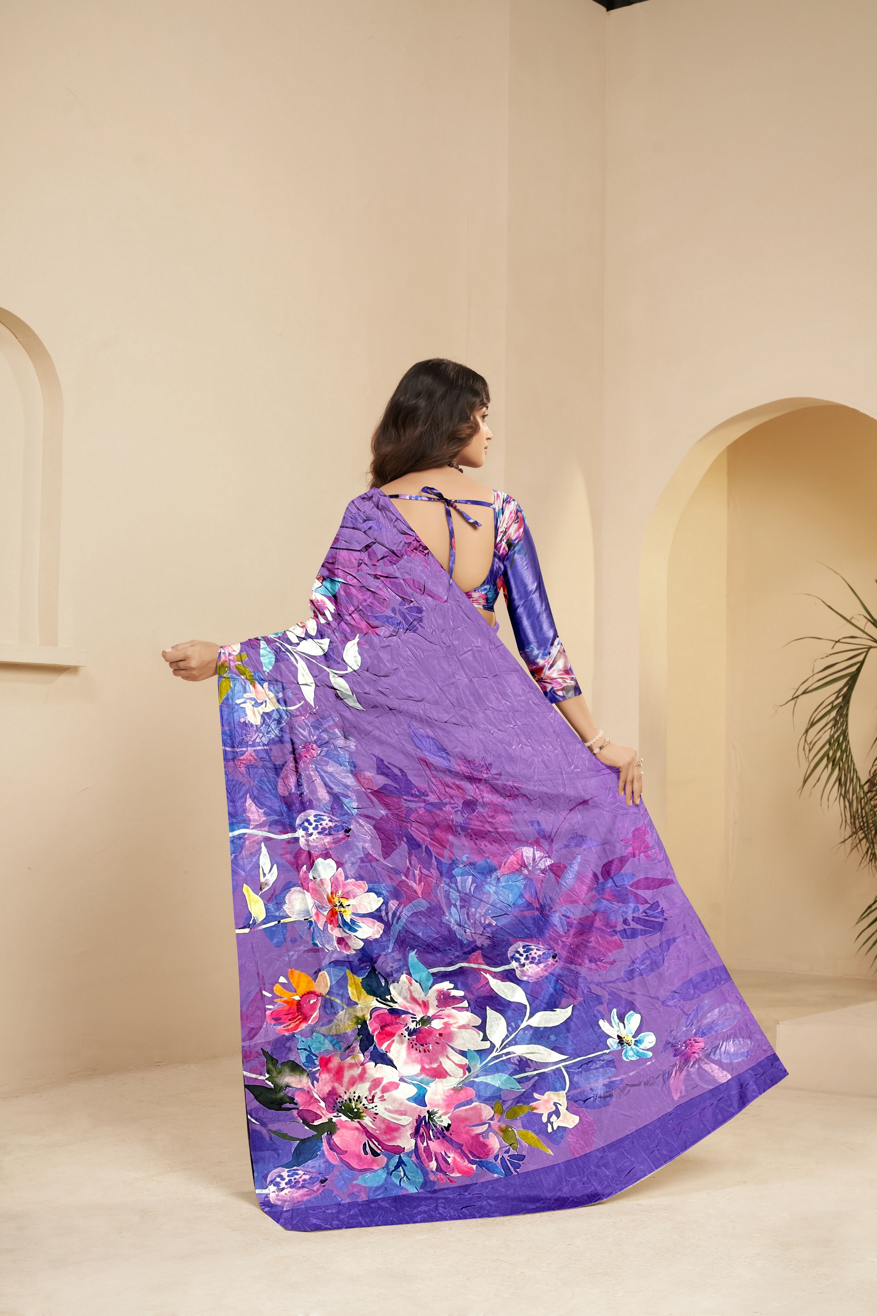 Mauve Color Malai Crepe Silk Designer Digital Printed Ethnic Partywear Saree