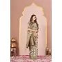 Mehandi Color Tussar Silk Designer Printed Saree With Woven Designer
