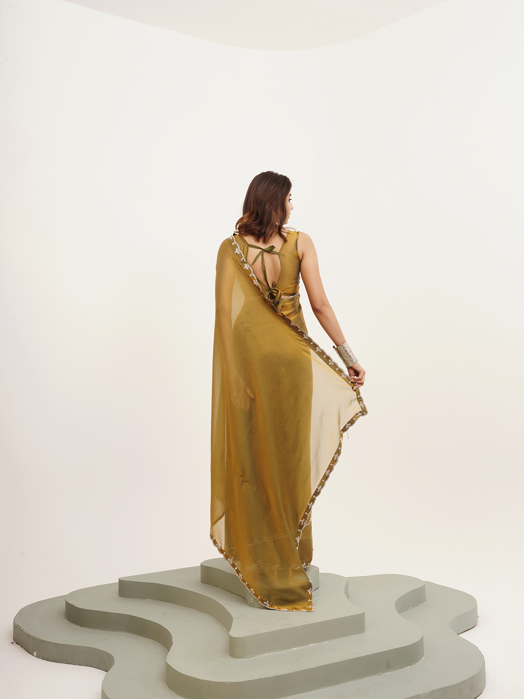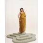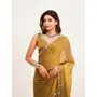 Metallic Mustard Color Beautiful Partywear Embellished Beads and Stones Satin Saree
