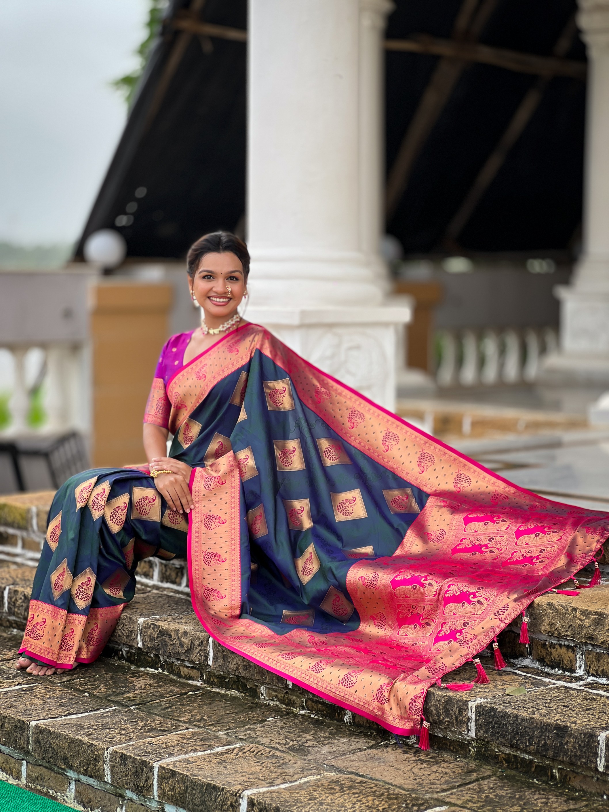 Morpich Color Beautiful Woven Designer Meenakari Banarasi Silk Saree