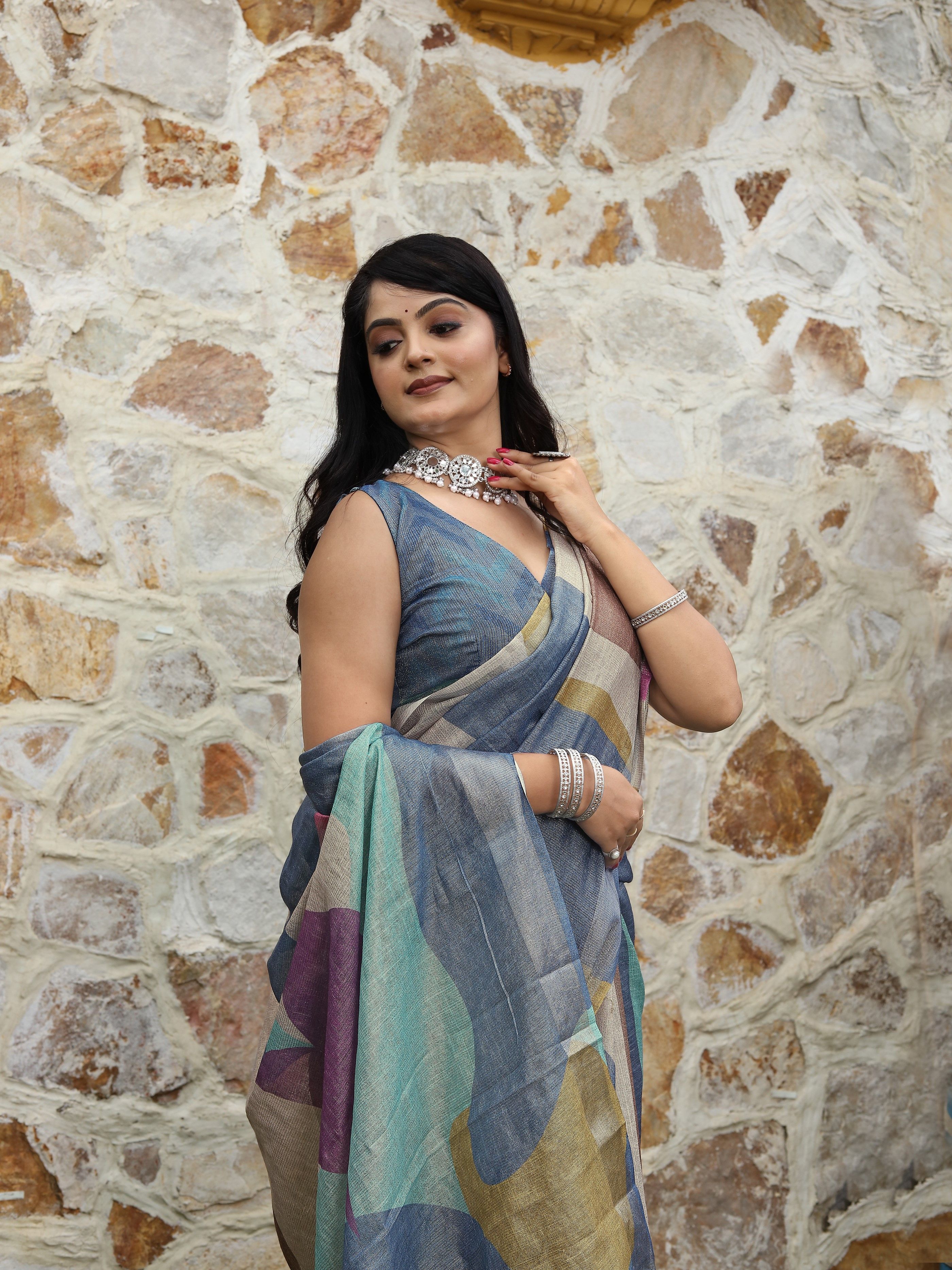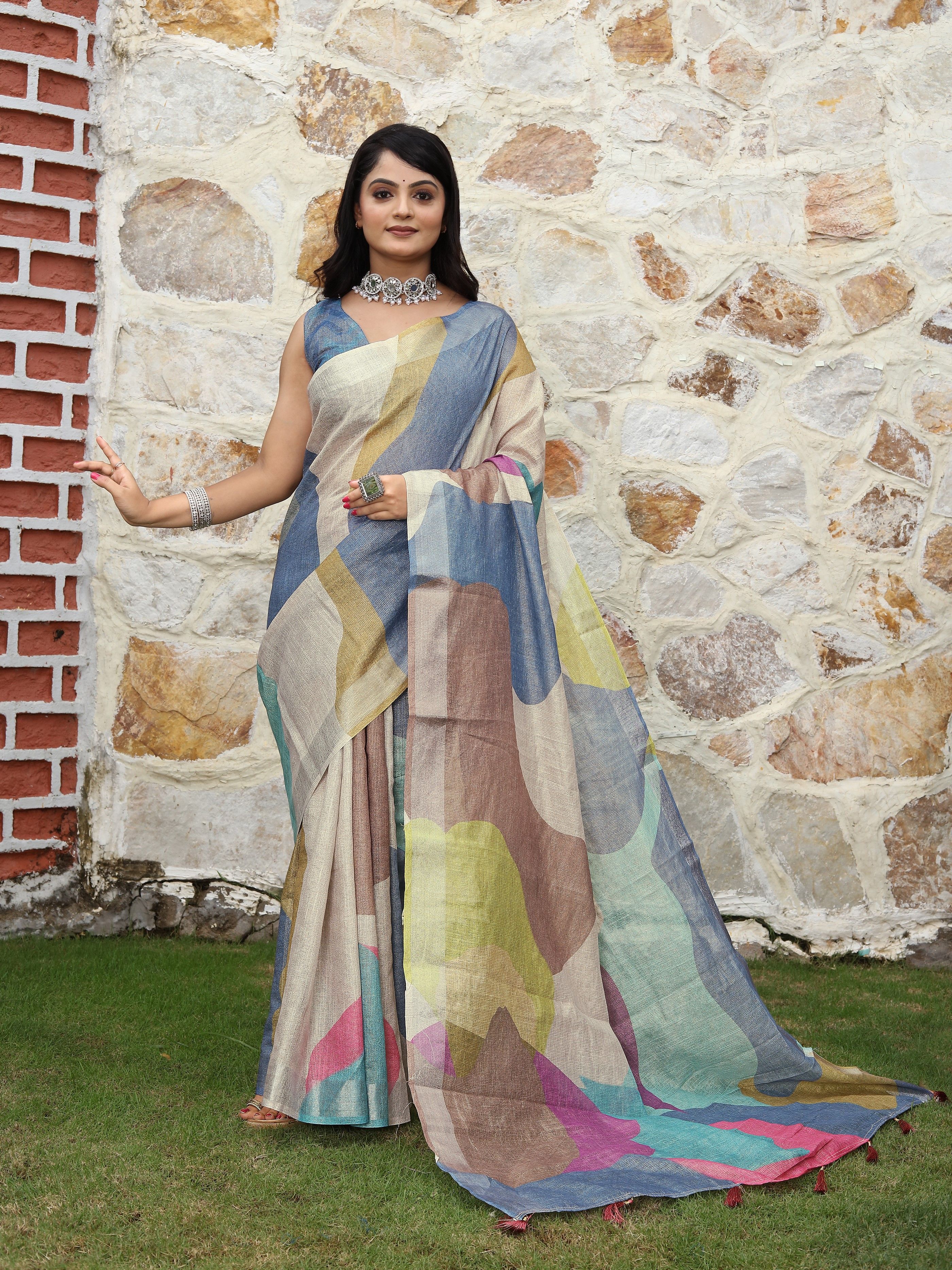 Multy Color Cotton Shimmer Fabric Designer Printed Ethnic Girlie Saree