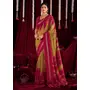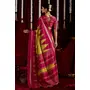 Mustard & Pink Color Ikkat Silk Fabric Designer Zig Zag Printed Traditional Party Looks Saree