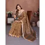 Mustard Color Linen Cotton Fabric Woven Checks Designer Trendy Ethnic Saree