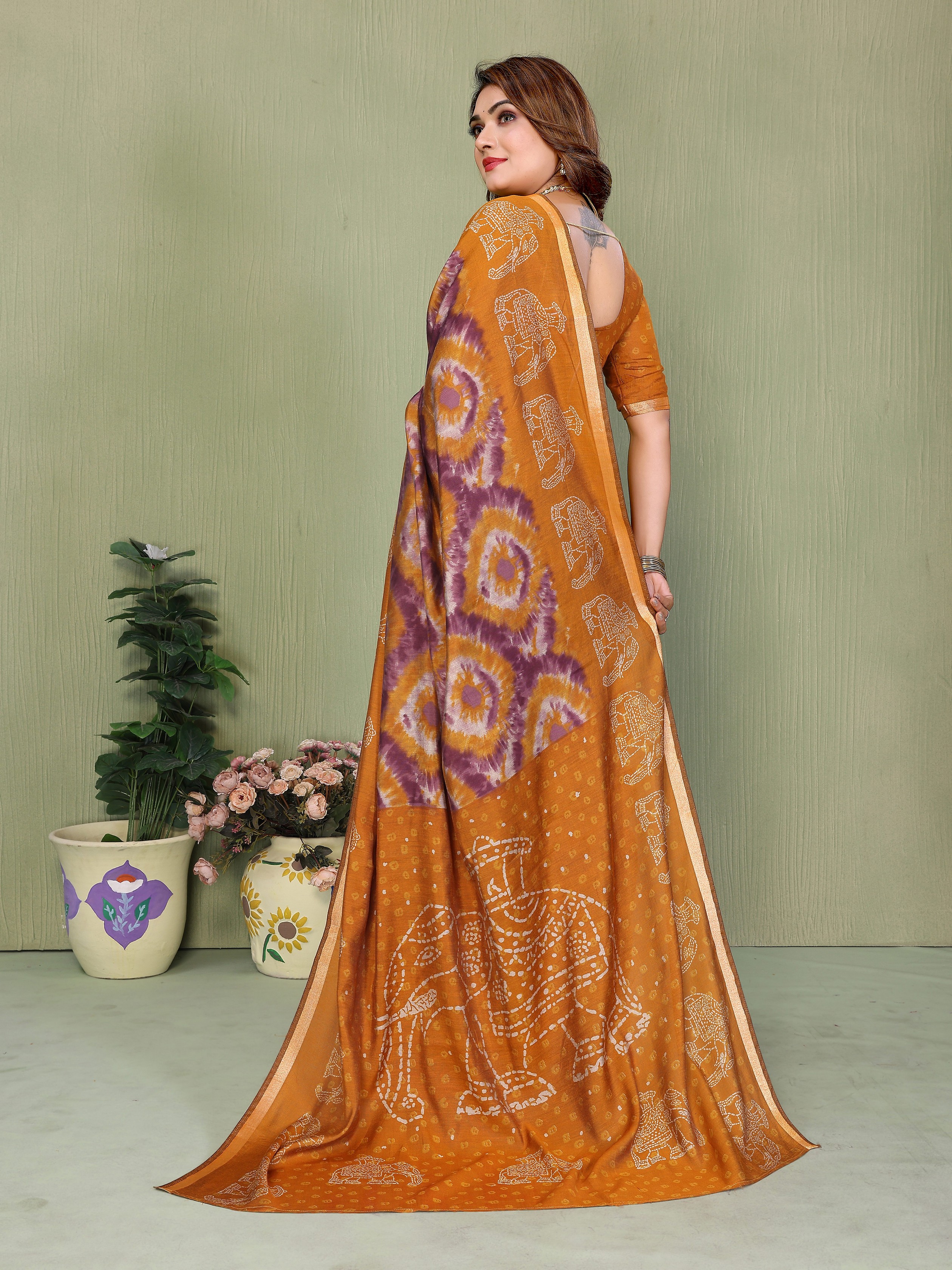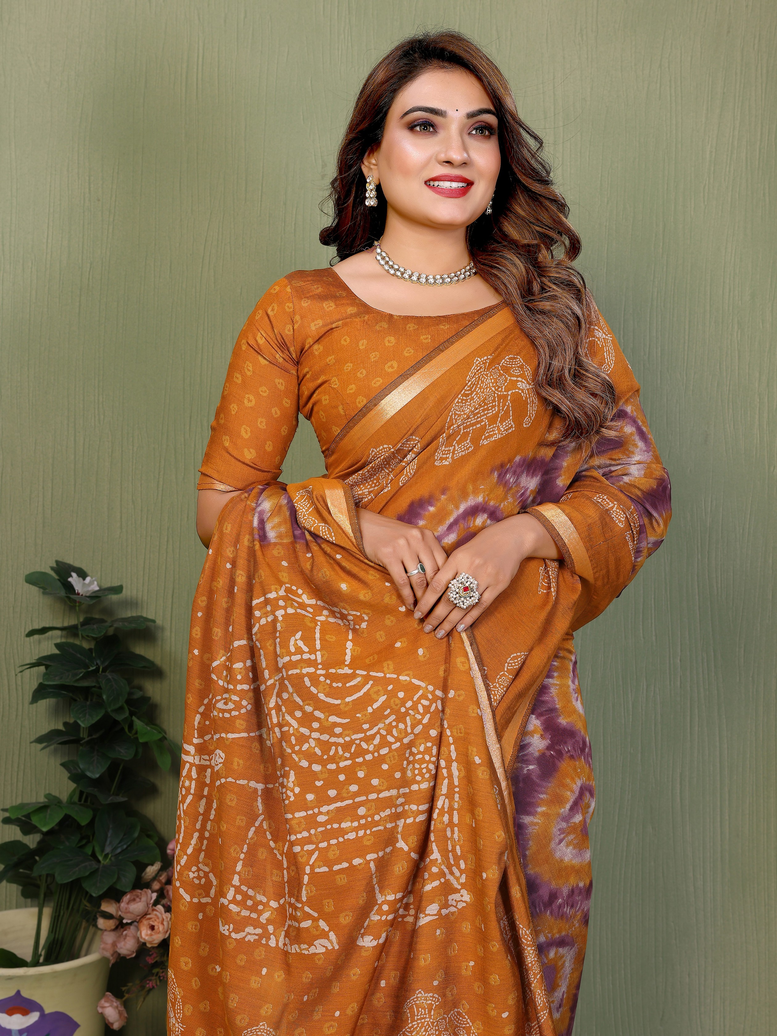 Mustard Color Mul Cotton Fabric Designer Printed Festive Special Saree