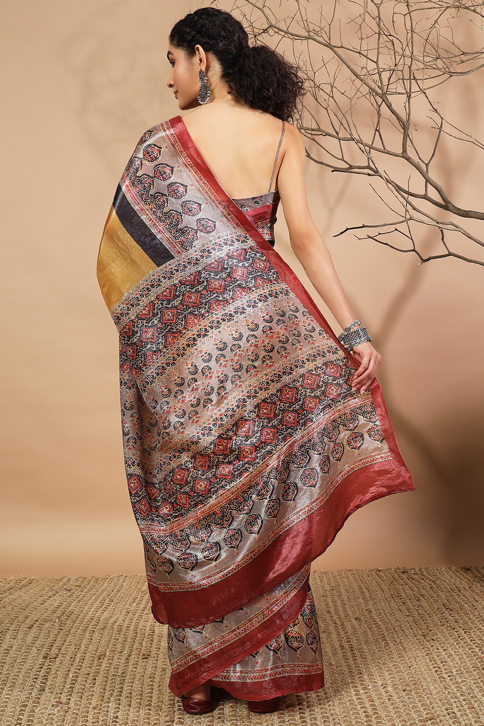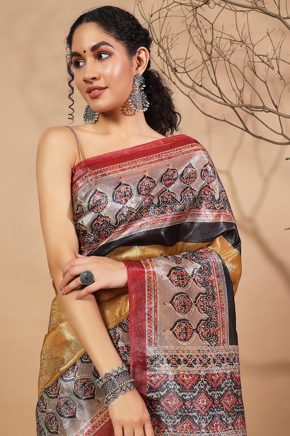 Mustard Color Tissue Fabric Designer Digital Printed Fancy Trendy Saree