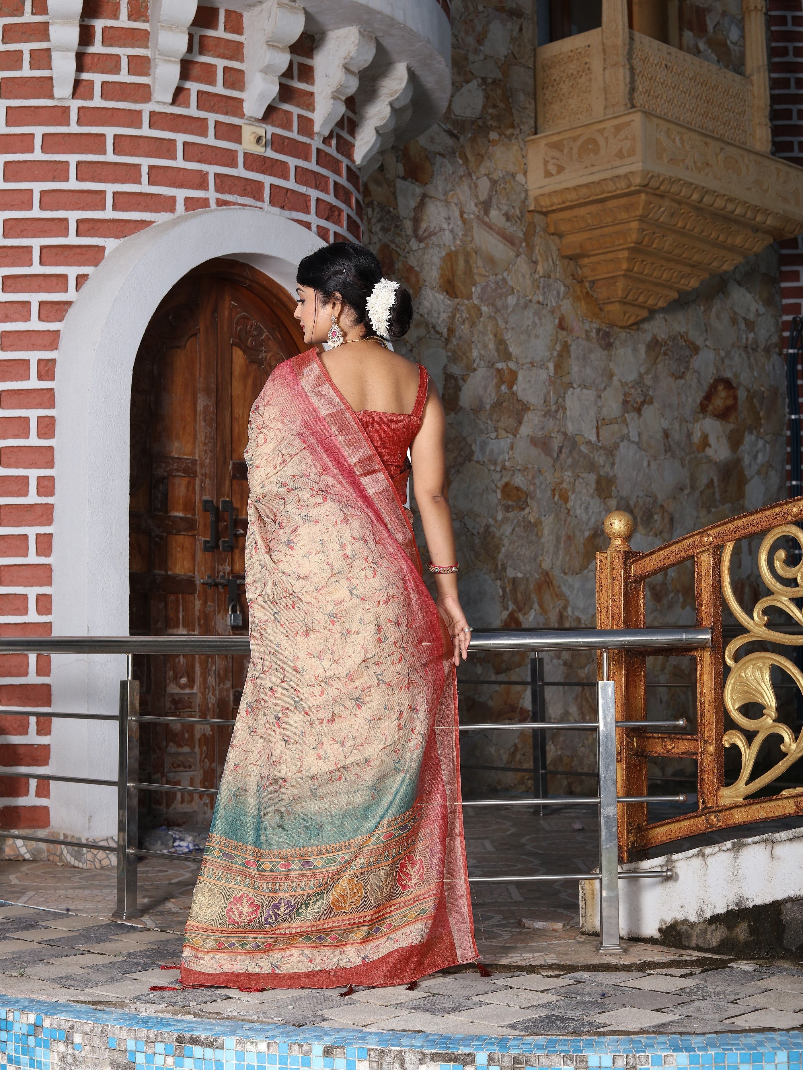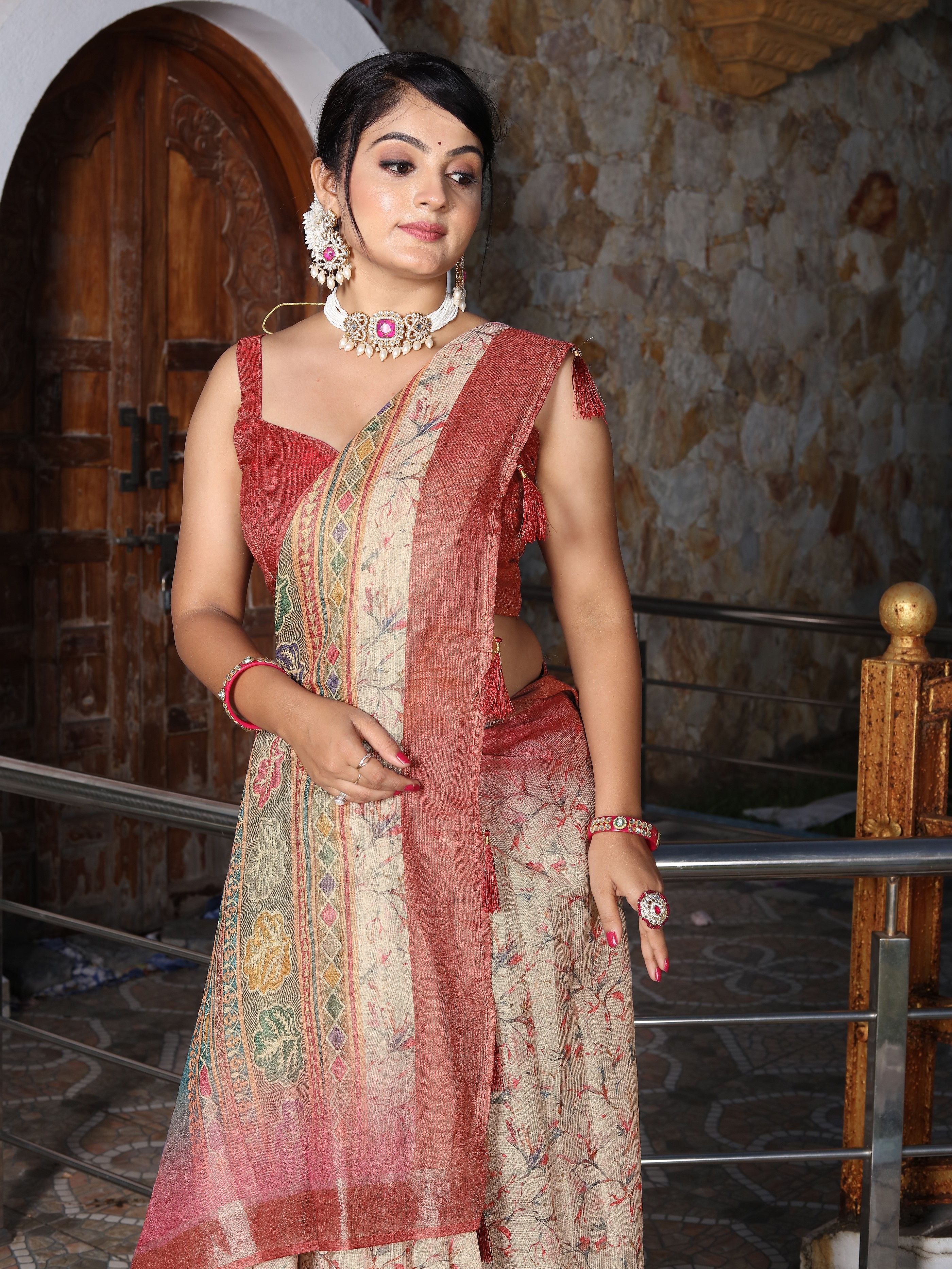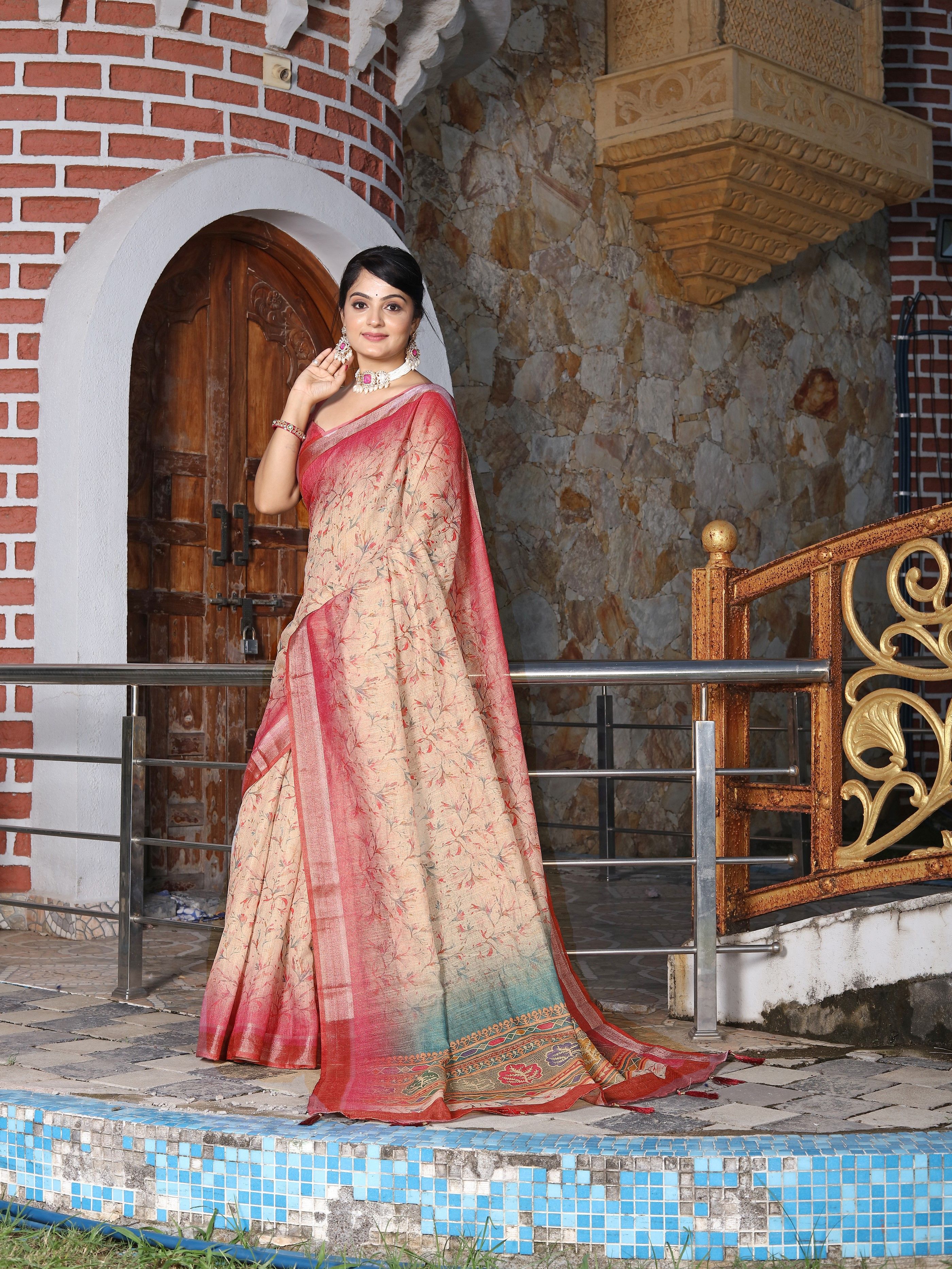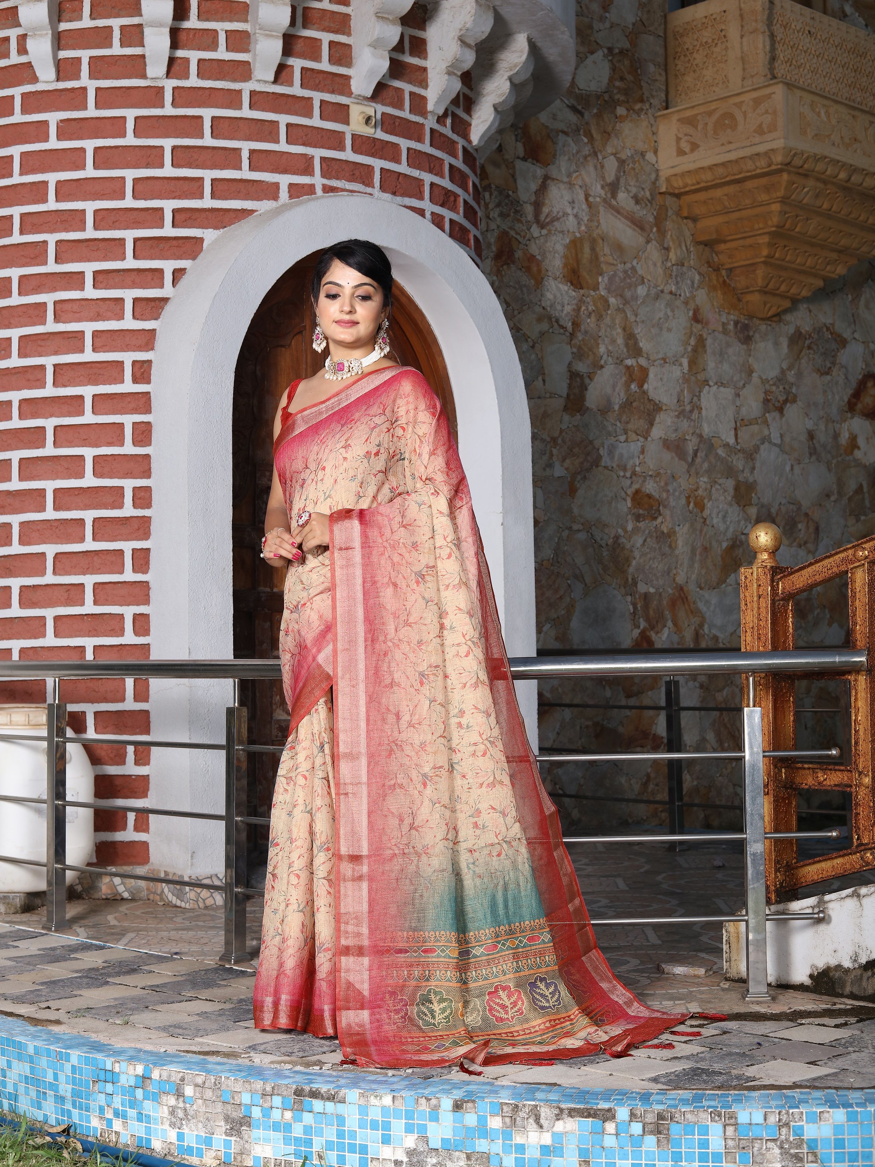 Off White Color Cotton Shimmer Fabric Designer Printed Ethnic Girlie Saree