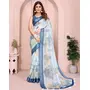 Off White Color Linen Cotton Fabric Designer Printed Formal Looks Sophisticated Saree