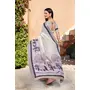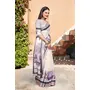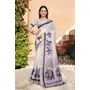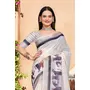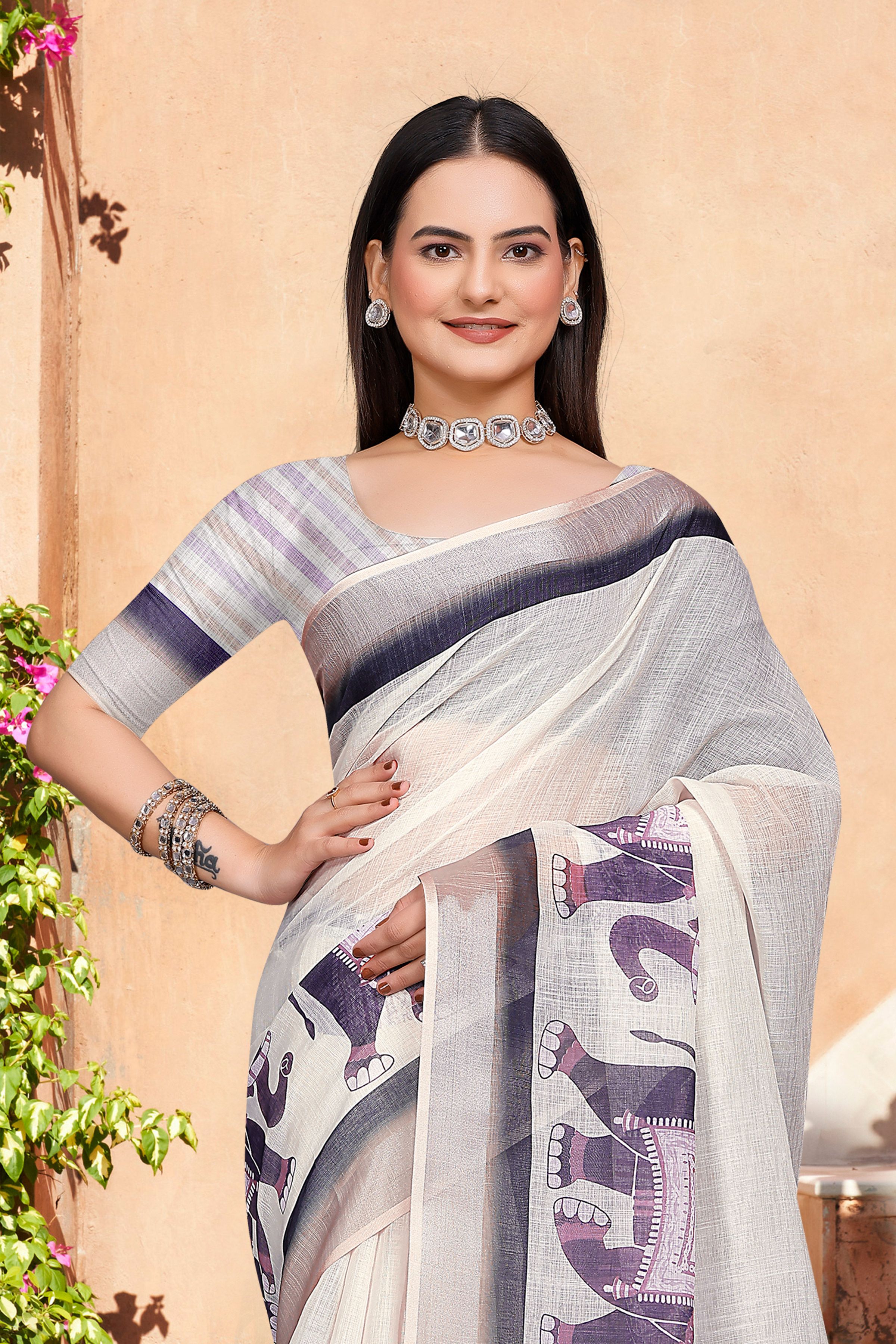 Off White Color Linen Cotton Fabric Woven Border Designer Printed Saree