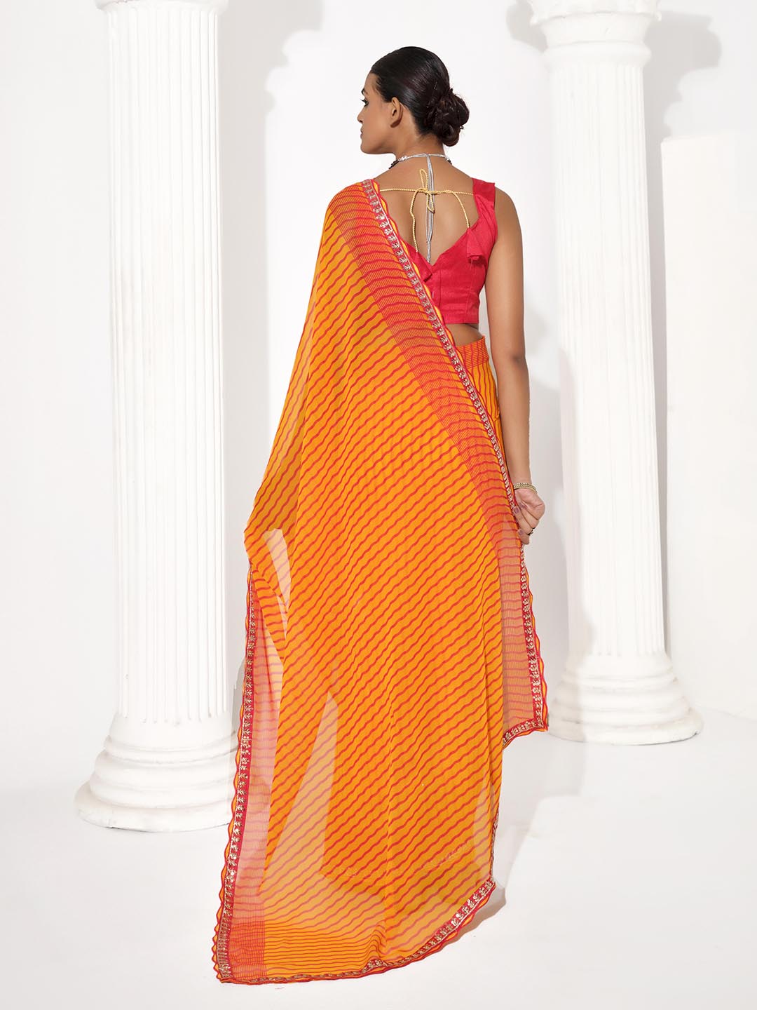 Orange Color Georgette Fabric Beautiful Designer Printed Saree