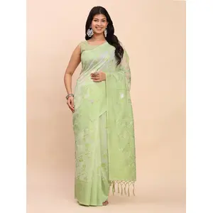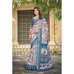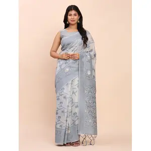Blue Color Linen Cotton Saree With...