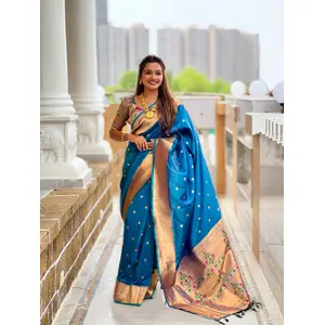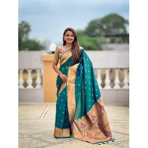 Teal Blue Color Paithani Silk Woven...
