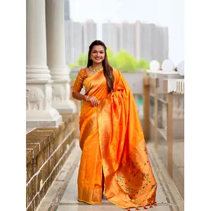 Orange Color Paithani Silk Saree With...