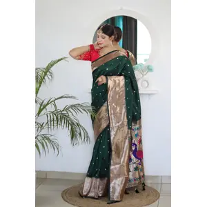 Green Color Paithani Silk Saree With...