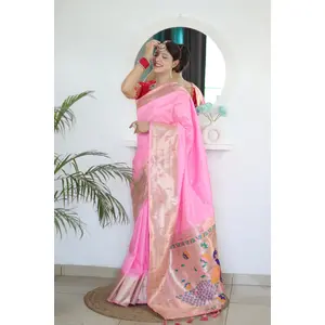 Pink Color Paithani Silk Saree With...