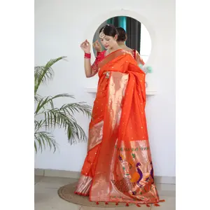 Orange Color Paithani Silk Woven...
