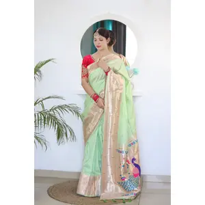 Pista Color Paithani Silk Saree With...