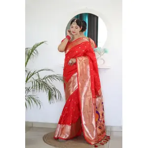 Red Color Paithani Silk Saree With...