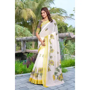 Cream Color Linen Cotton Fabric...