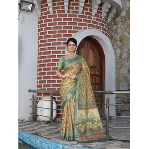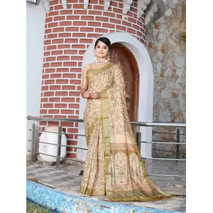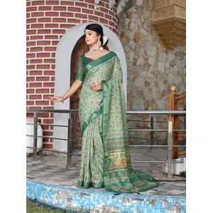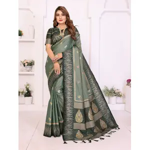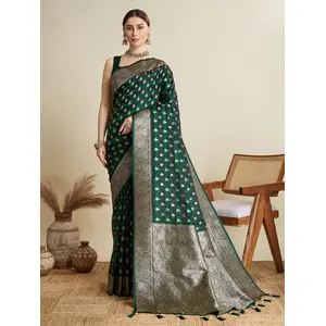 Green Color Satin Silk Wevon Jari...