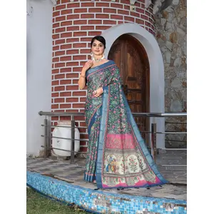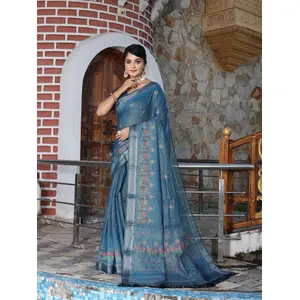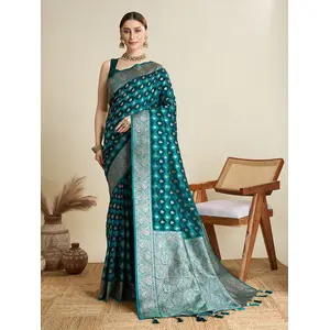 Blue Color Satin Silk Wevon Jari...