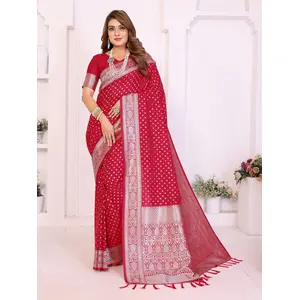 Red Color Georgette Fabric Woven Rich...