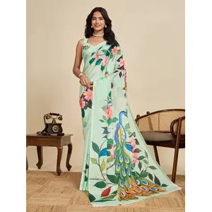 Pista Color Linen Cotton Saree With...