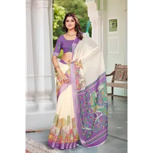 Lavender Color Linen Cotton Saree...