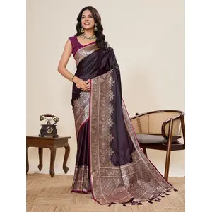 Purple Color Soft Silk Fabric Woven...
