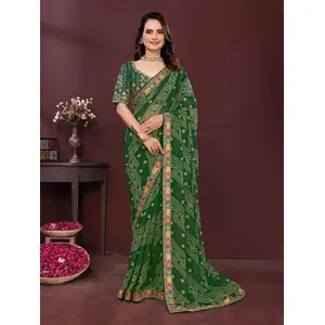 Green Color Georgette Fabric Bandhej...
