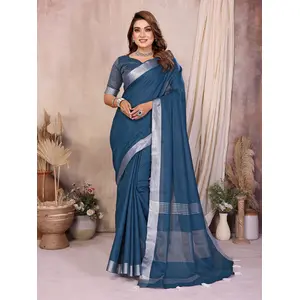 Teal Color Linen Cotton Fabric Woven...