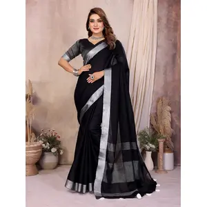 Black Color Linen Cotton Fabric Woven...