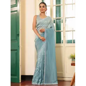 Teal Color Tissue Fabric Embroidery...