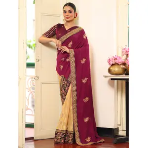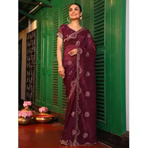 Wine Color Embroidery Work Viscose...
