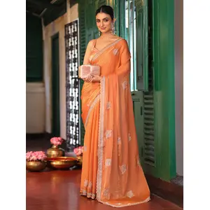 Orange Color Tissue Fabric Embroidery...