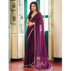 Purple Color Tissue Fabric Fancy...