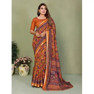 Rust Color Tissue Linen Silk Weaving...