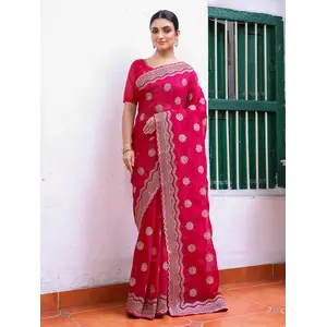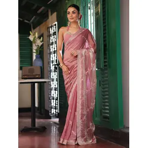 Pink Color Embroidery Work Tissue...