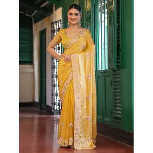 Yellow Color Embroidery Work Tissue...