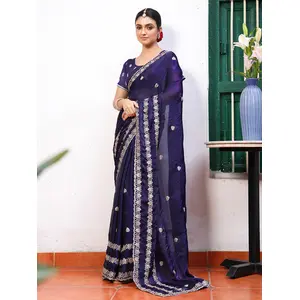 Blue Color Tissue Fabric Embroidery...