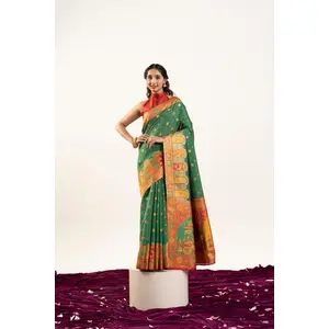 Green Color Woven Designer Banarasi...