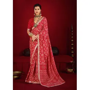 Red Color Soft Silk Fabric Graceful...
