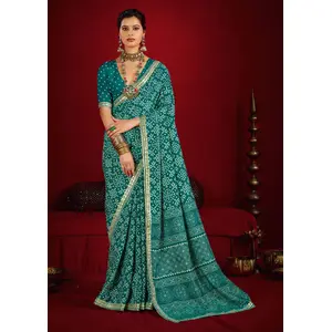 Teal Color Soft Silk Fabric Graceful...