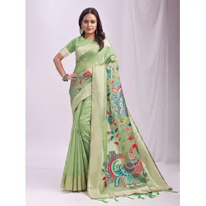 Sea Green Color Linen Cotton Woven...