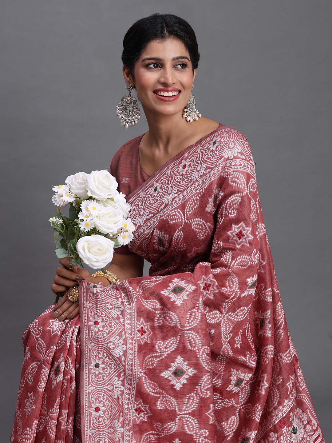 Peach Color Beautiful Woven Designer Linen Cotton Saree