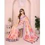 Peach Color Linen Cotton Fabric Festive Looks Printed Saree