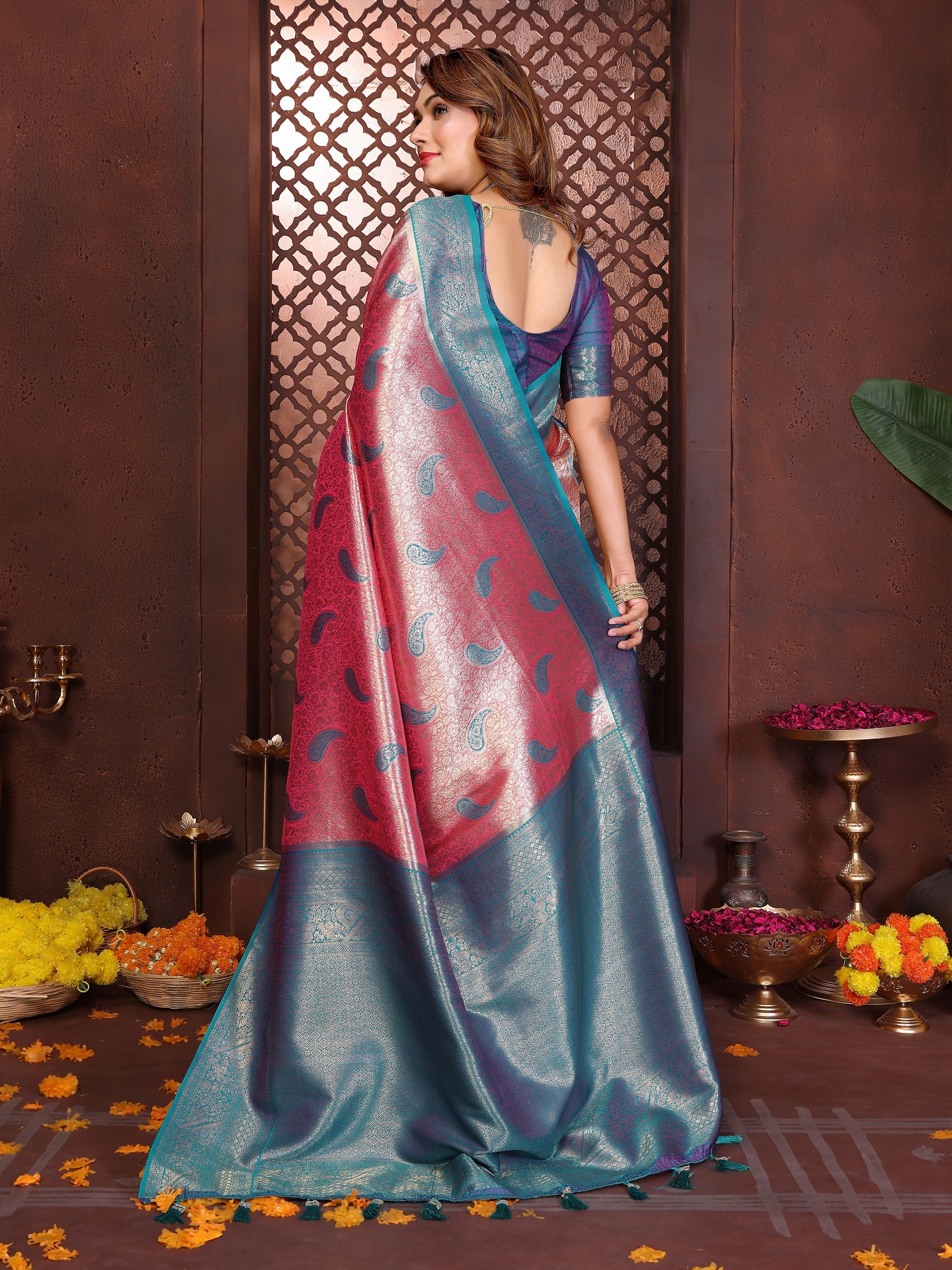 Pink Color Banarasi Tissue Silk Woven Rich Paithani Designer Ceremonial saree