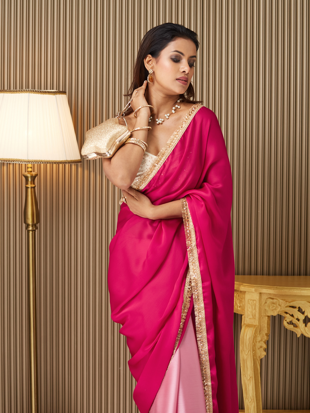 Pink Color Chiffon Fabric Fancy Designer Bollywood Party Saree